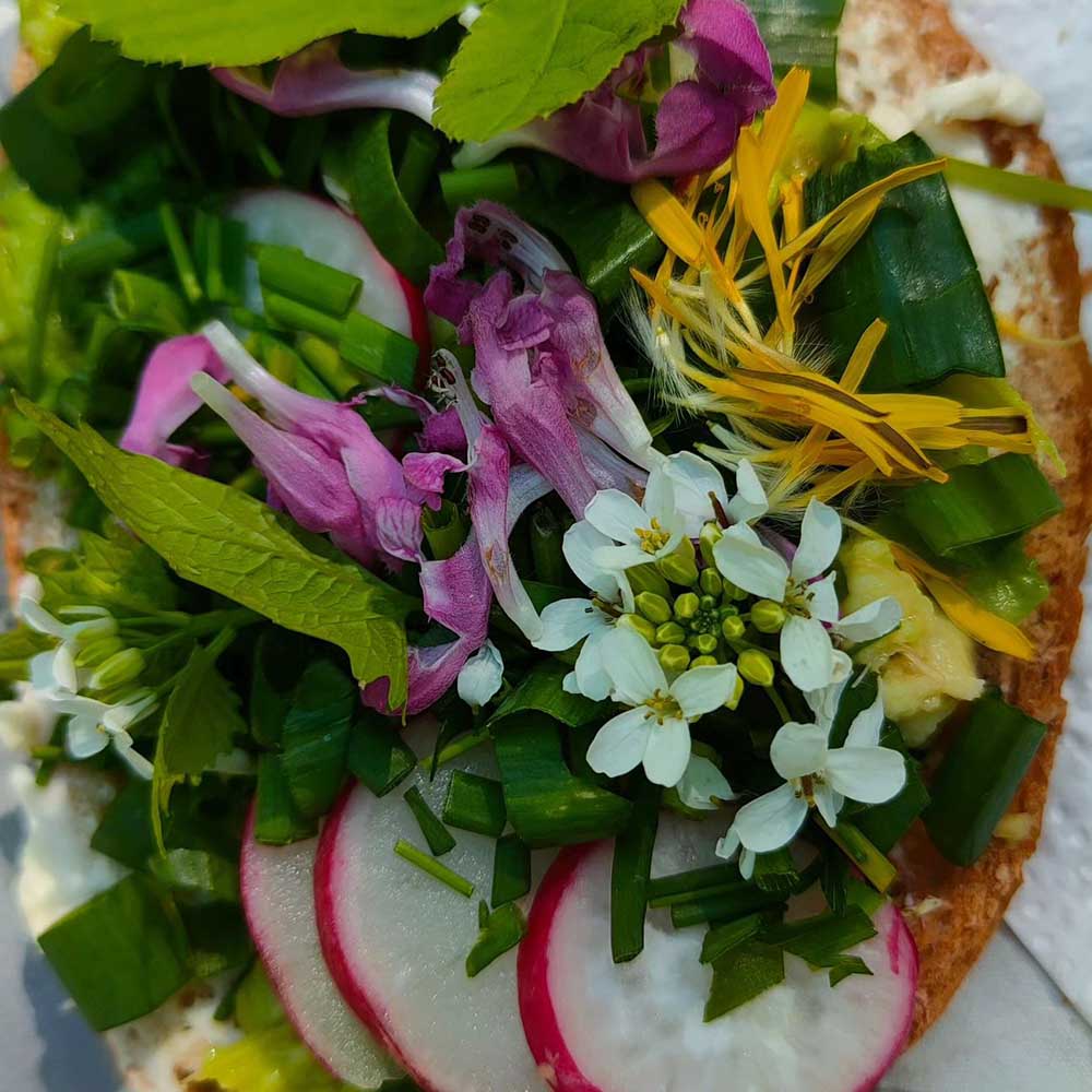 Sałatki z dzikimi liśćmi – młoda pokrzywa, stokrotki czy mniszek świetnie uzupełnią tradycyjne mieszanki sałatkowe, pasty i serki.