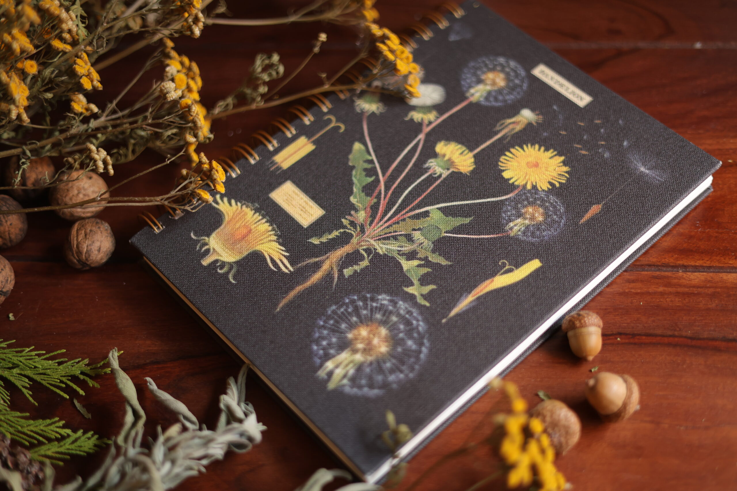 - sztywna okładka oprawiona w zadrukowane płótno lniane NATUURLINNEN