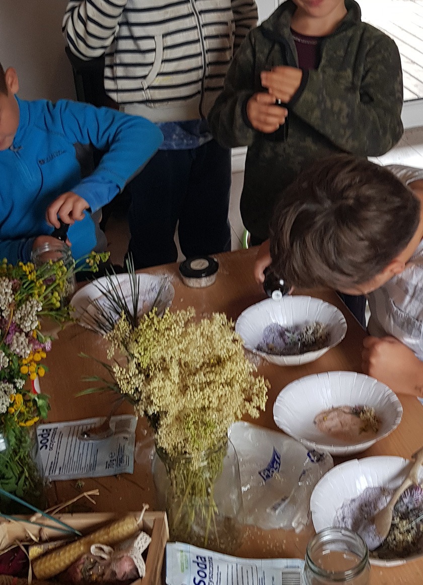 Dowiedzieliśmy się co nieco o owocach jesieni jako surowcach zielarskich i nauczyliśmy się wytwarzać syrop z kaliny.