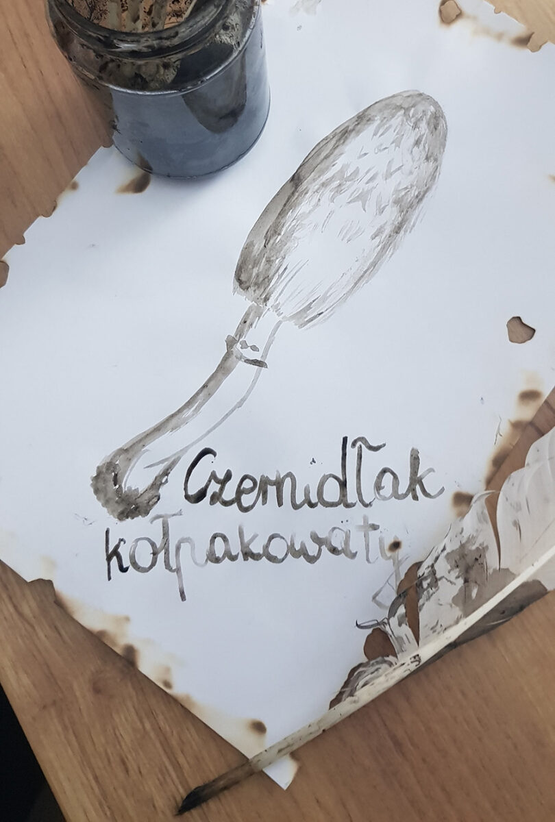 Ćwiczyliśmy pisanie gęsim piórem atramentem z czernidłaka.